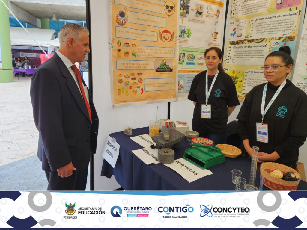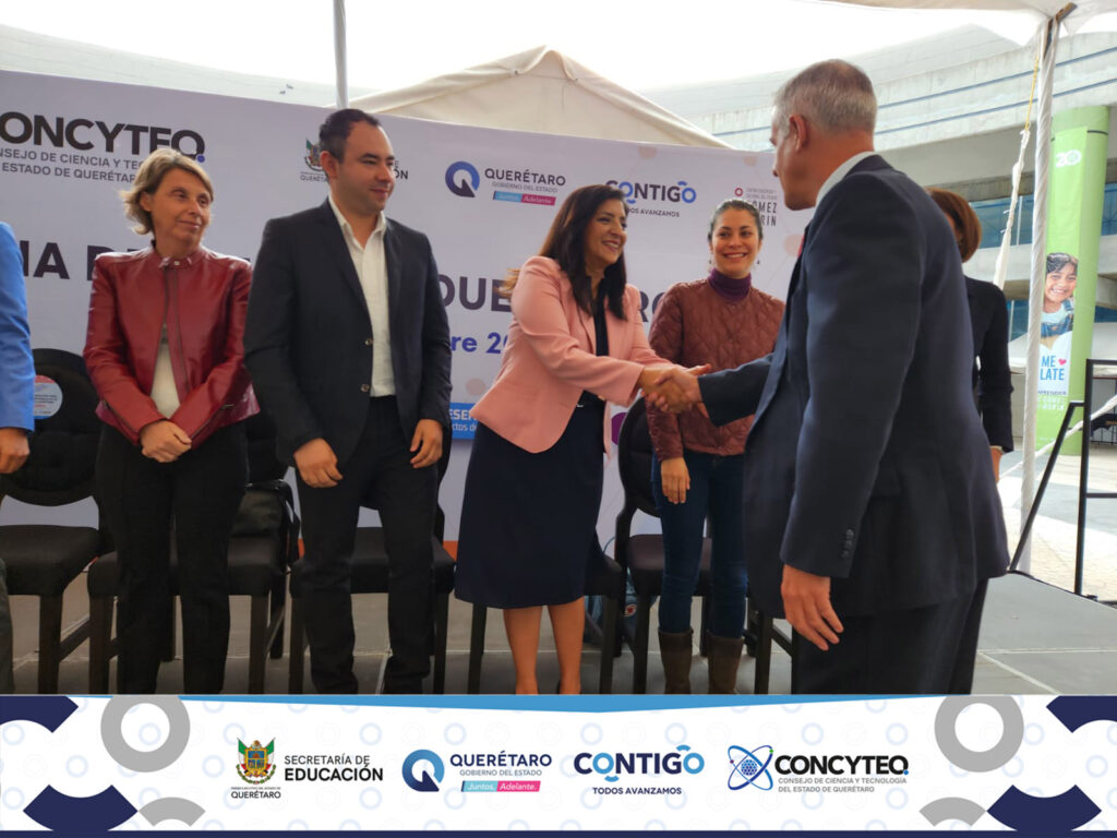 Con el objetivo de crear una atmósfera propicia para la interacción de científicos, divulgadores, docentes, niños y jóvenes, y así promover el acceso de la sociedad a los contextos, procesos y métodos de producción científica, tecnológica y de innovación de los Centros de Investigación y de las Instituciones de Educación Superior del estado de Querétaro; el Director General del CONCYTEQ, Dr. Enrique Rabell García encabezó la inauguración de la “Feria de Ciencias, Querétaro 2023” y la Exposición Itinerante “Matematízate” de Universum en las instalaciones del Centro Educativo y Cultural del Estado Gómez Morin
